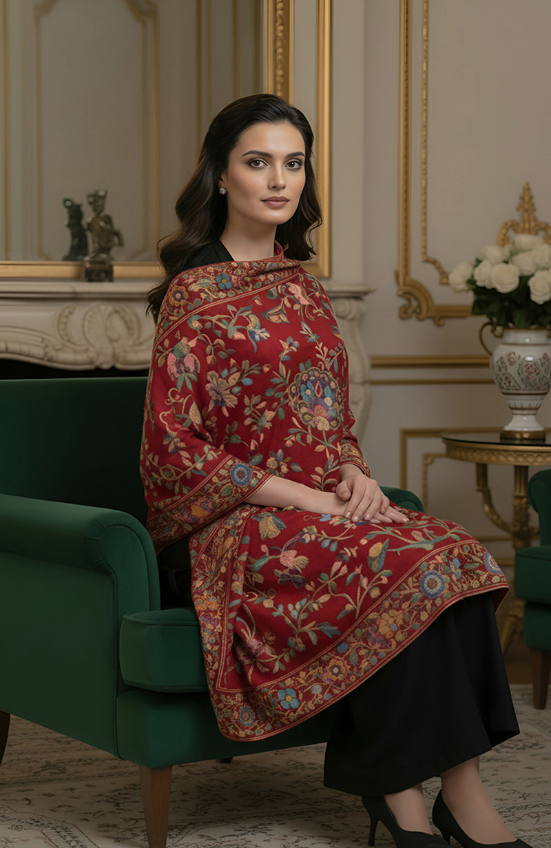 Gulnaar Rouge Parsi Gara Embroidered Pure Pashmina Shawl