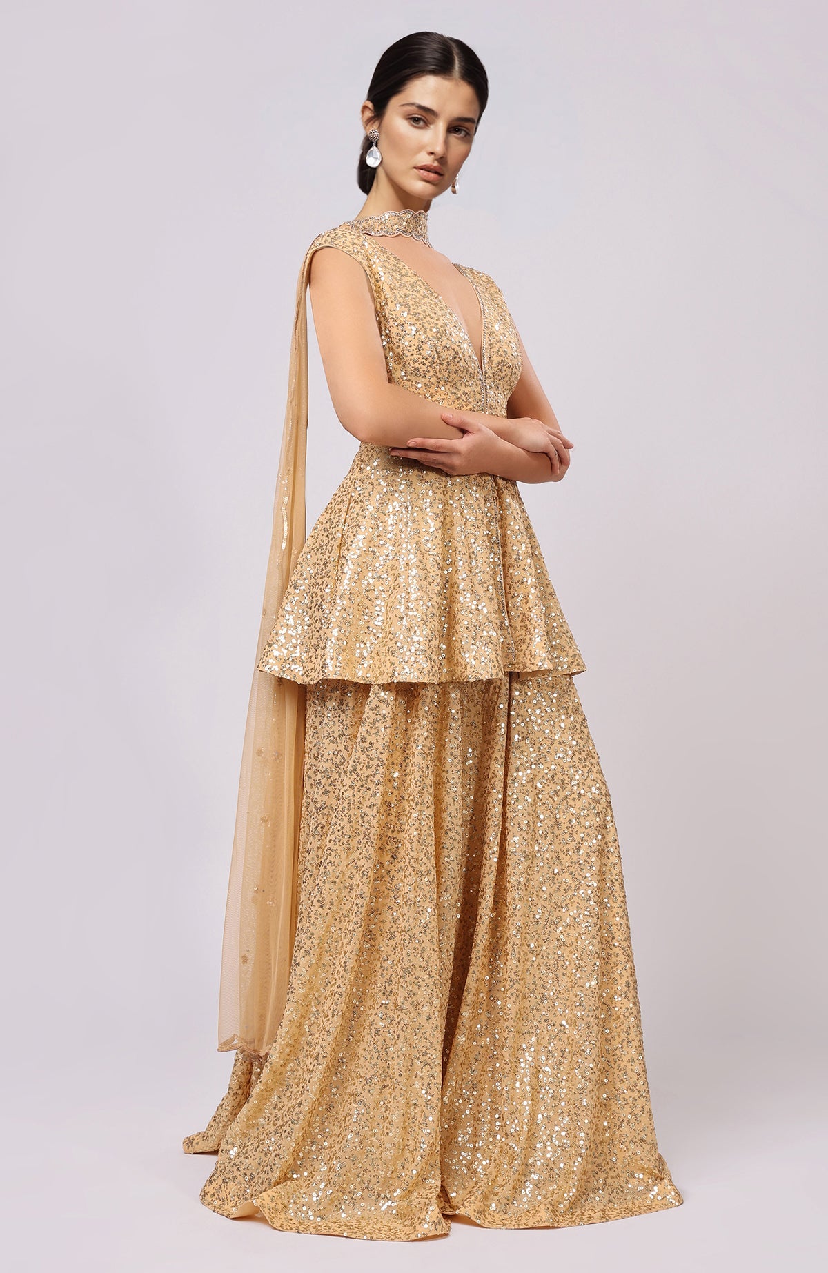 Gold Sequin Embroidered Sharara Set